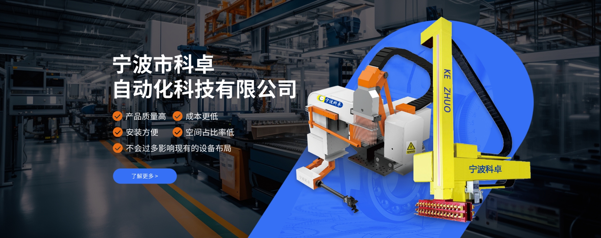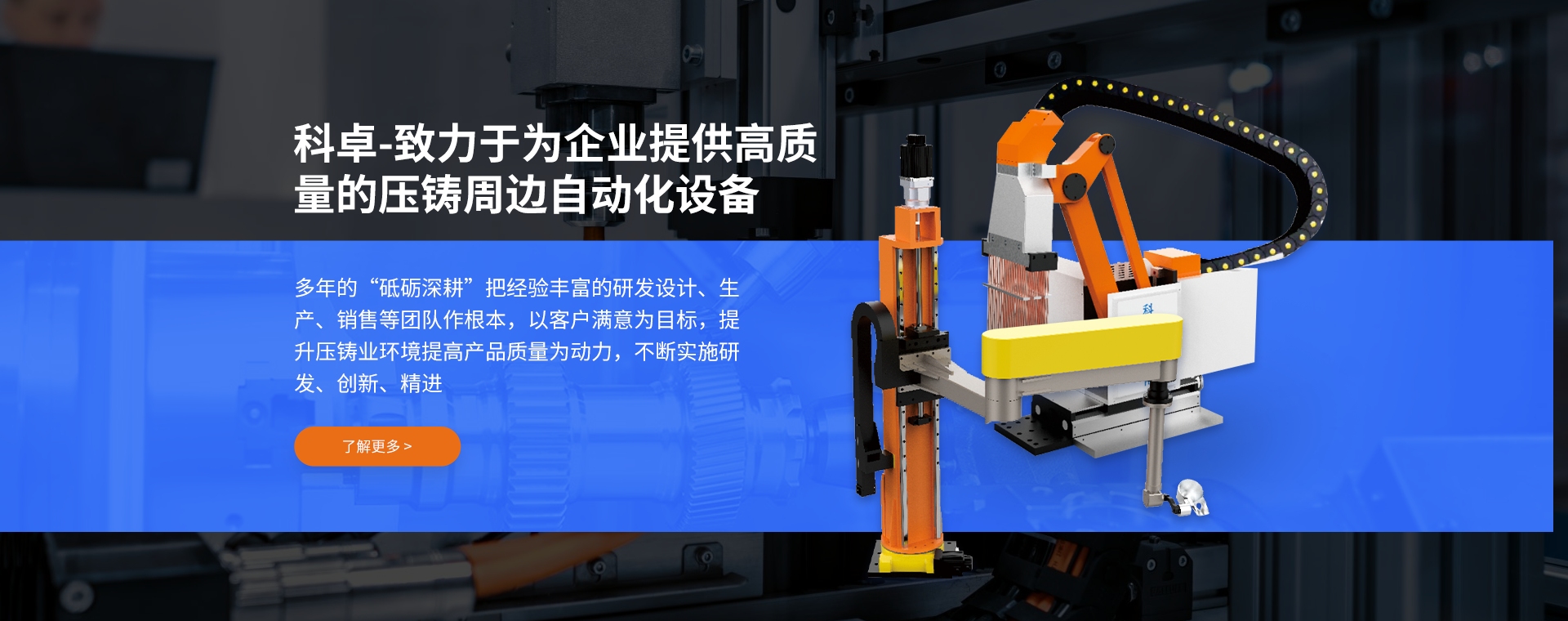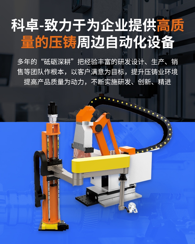 宁波市科卓自动化科技有限公司是一家压铸周边自动化设备生产厂家,在国内压铸领域深耕10年,在多年发展和经验积累中,成长为一家集研发... ...从设计、生产到运输,品牌包......